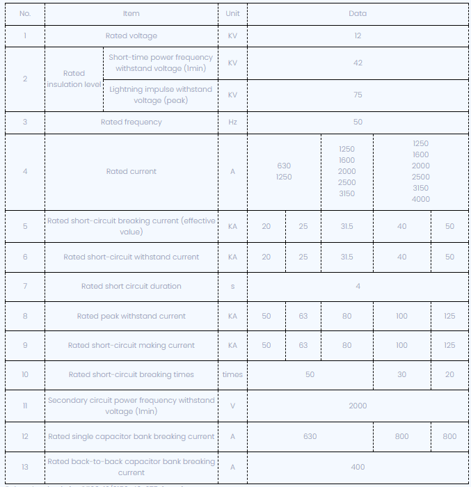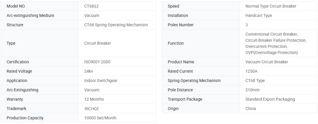 CT68-12 को सुविधाहरू भ्याकुम सर्किट ब्रेकरर