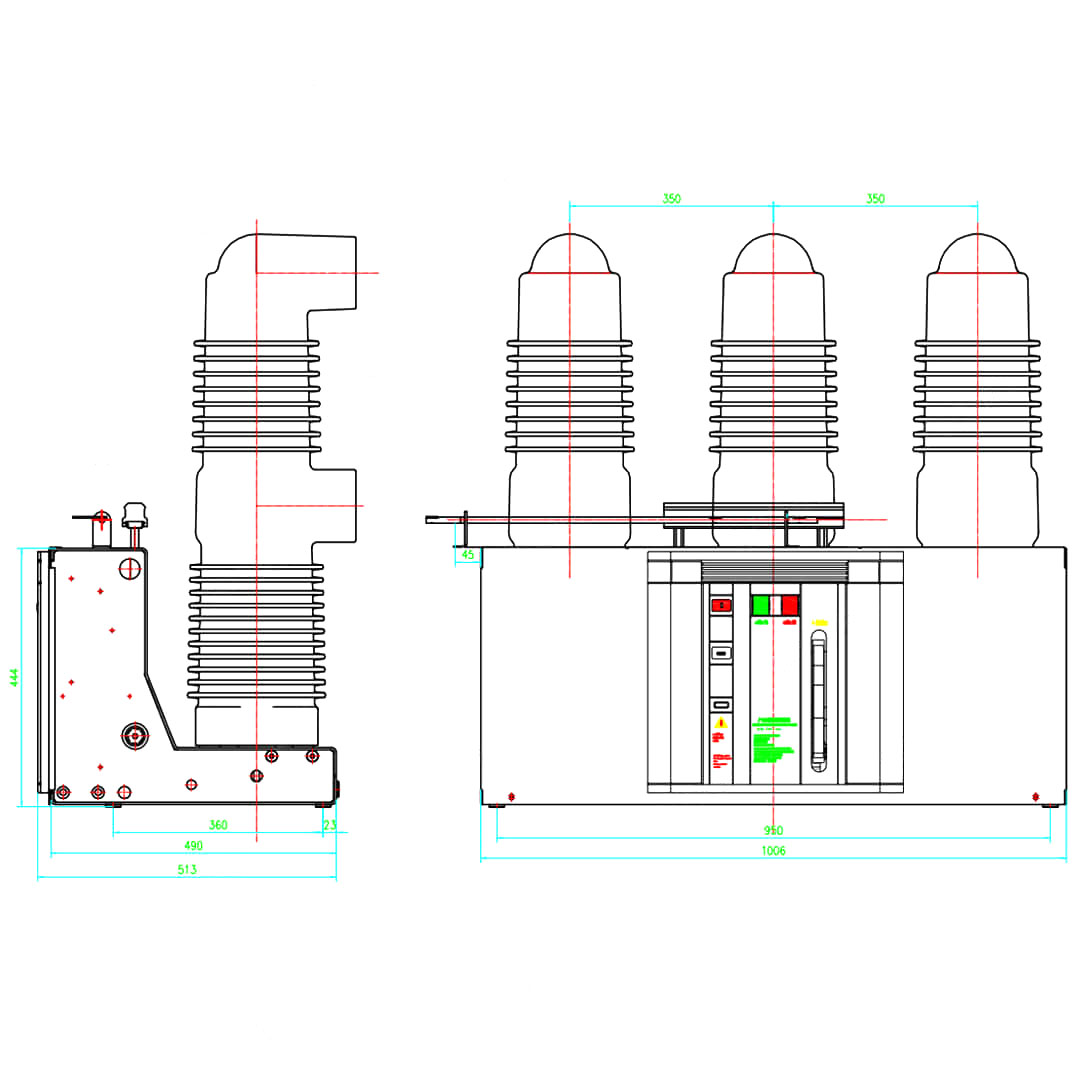 संकलन सर्किट इन्सुलेटेड सिलिन्डर फारममा विभाजित गरिएको छ (भ्याकुर इन्टररूटर स्थापना गरिएको छ) EPPOXY RILINE मा (भ्याकुम इन्टररूप्टर स्थापना गरिएको छ)।