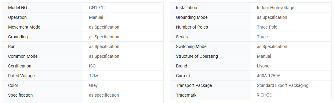 GN19 -12, 12C श्रृंखला इनडोोर हाई-भोल्टेज विच्छेदन स्विच (जसो भोल्टेज र कुनै लोड हुने क्रममा सर्कुट उपकरणहरू) हुन्।