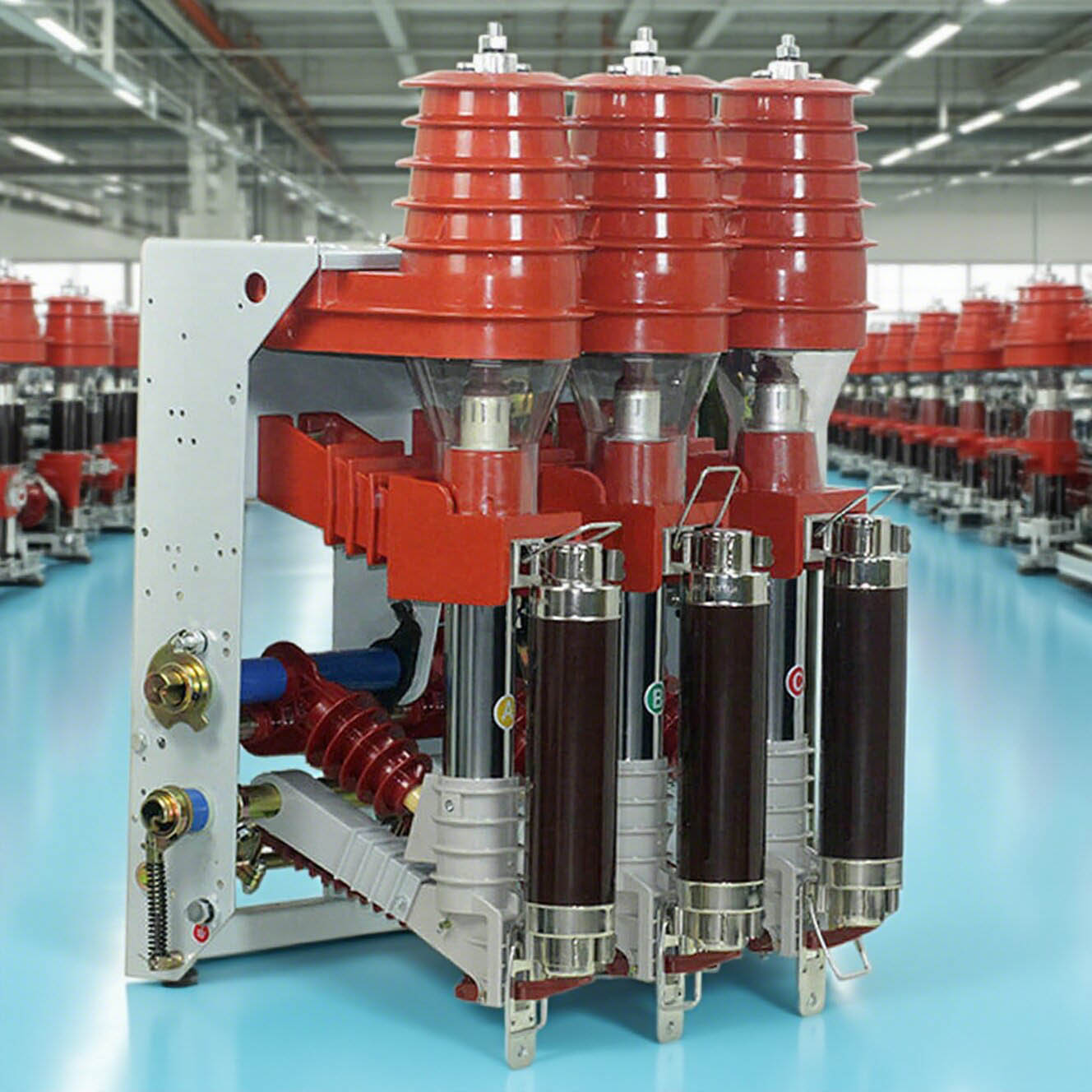 Mechanism:Pneumatic arc extinguishing: High-velocity gas flow (e.g., dry air) generated by piston compression extinguishes the arc. The design of arc contacts reduces wear on main contacts, extending maintenance intervals.