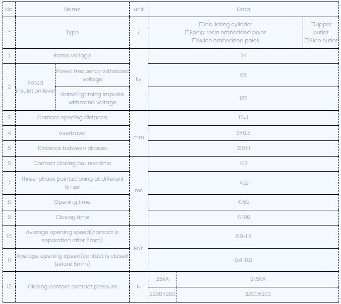 VBI-24 साइड माउन्ट VCB को मुख्य प्राविधिक विवरण