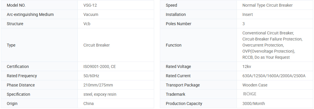 VSG-12 / 2000a ह्यान्डर्बर्ट प्रकार निश्चित ध्रुवको साथ भ्याकुर सर्किट ब्रेकर