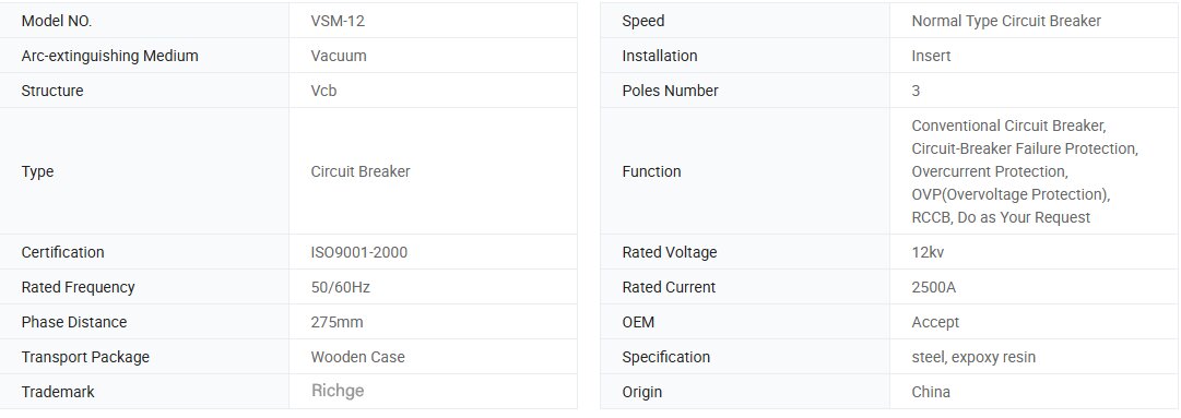 VSM-12 VAMUM सर्किट ब्रेक निर्वाह एक स्थायी चुम्बन अपरेटिंग संयन्त्र र अगाडि-र पछाडि कन्फिगरेसनमा एक भ्याकुम ईन्टररूटर एकीकृत गर्दछ। ब्रेकरले एक निश्चित आर्क-बाह्य स्तम्भ (ठोस मुद्रा स्टिंग पोल) को साथ एक ड्र आउट-आउट प्रकार डिजाइन निर्दिष्ट गर्दछ र विद्युत् वातावरणमा उच्च विश्वसनीयता र प्रदर्शनका लागि डिजाइन गरिएको हो।