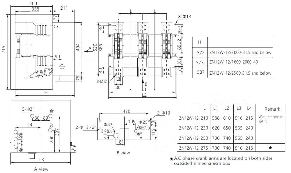 Zn12-12 श्रृंखला एसीयूराइन्ड स्तम्भ स्विच रिप्ले सर्किट ब्रेकर
